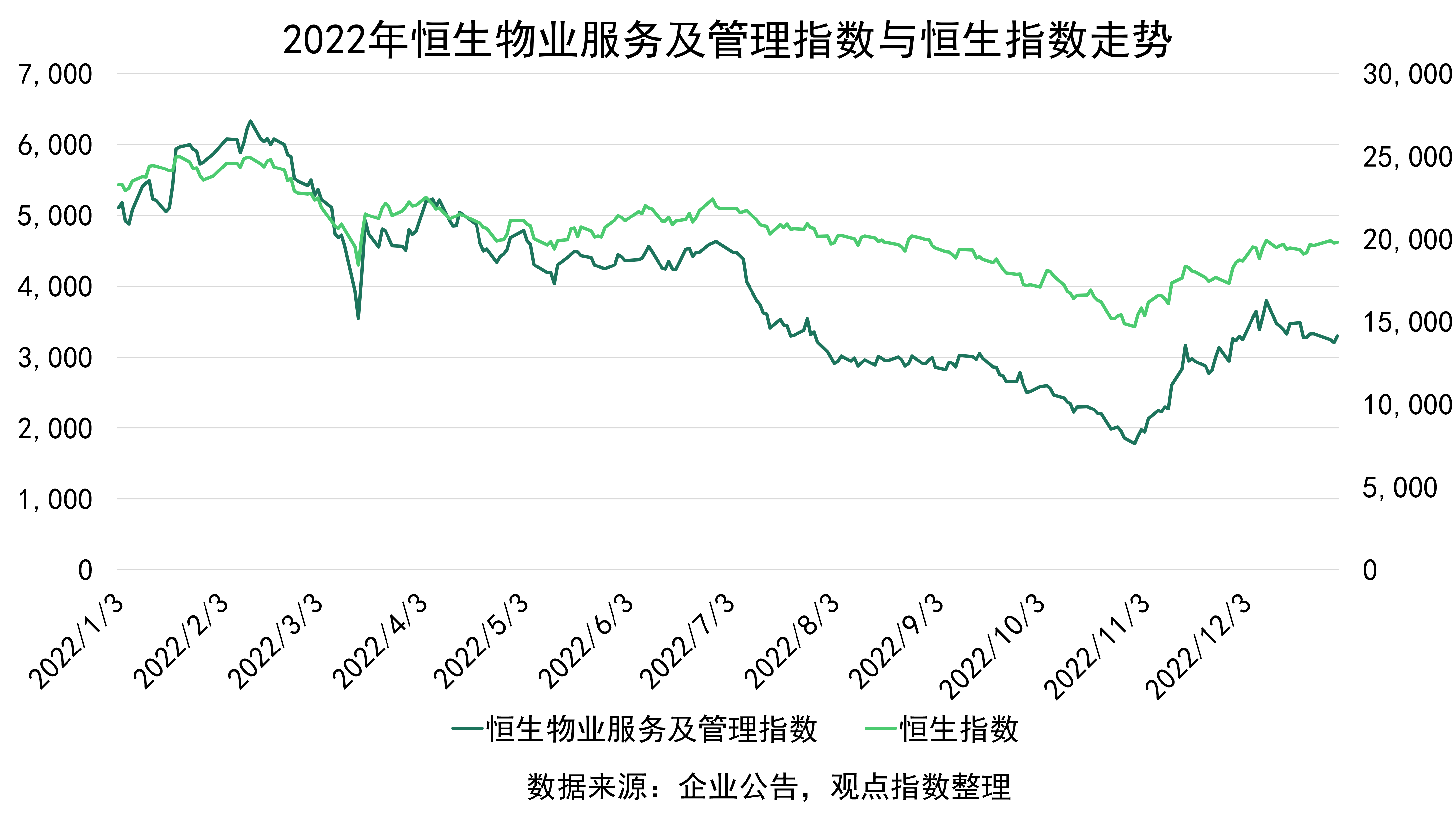 2022年全年,恒生物業(yè)服務(wù)及管理指數(shù)(HSPSM)全年跌幅高達(dá)38.43%,跑輸港股大盤恒生指數(shù)(HSI)23個百分點(diǎn)。