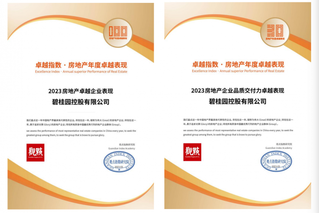 在全行業(yè)見(jiàn)證下,碧桂園憑借優(yōu)異表現(xiàn),成功入選“2023房地產(chǎn)卓越企業(yè)表現(xiàn)”,“2023”房地產(chǎn)企業(yè)品質(zhì)交付力卓越表現(xiàn)”。