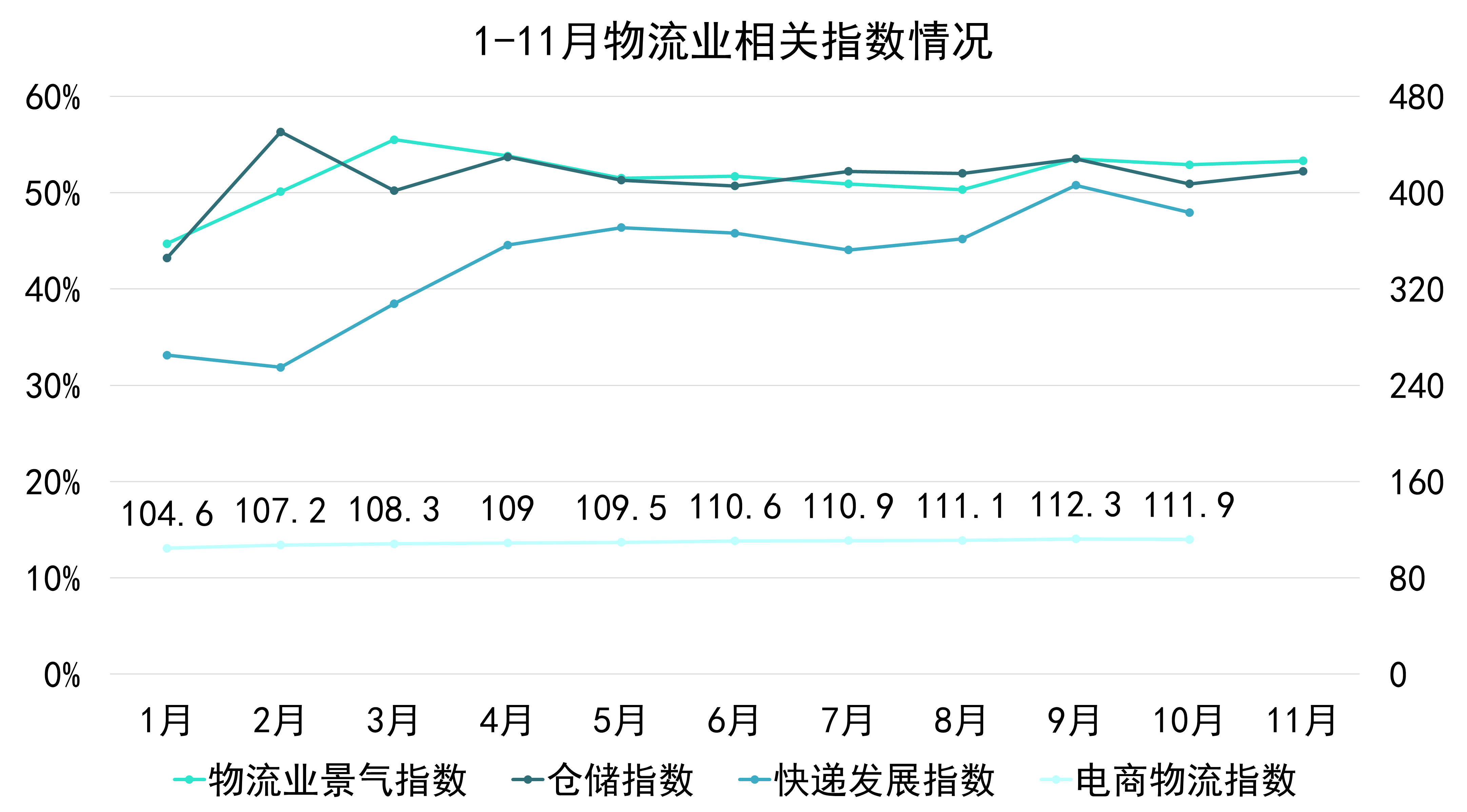 宏觀數(shù)據(jù)方面,縱觀1-10月物流、倉儲、電商及快遞等發(fā)展情況,可以發(fā)現(xiàn)年內(nèi)1月三項指數(shù)筑底,自2月起開始逐漸回升,雖部分月份有所回落但趨于穩(wěn)定,且數(shù)值持續(xù)維持擴張趨勢。