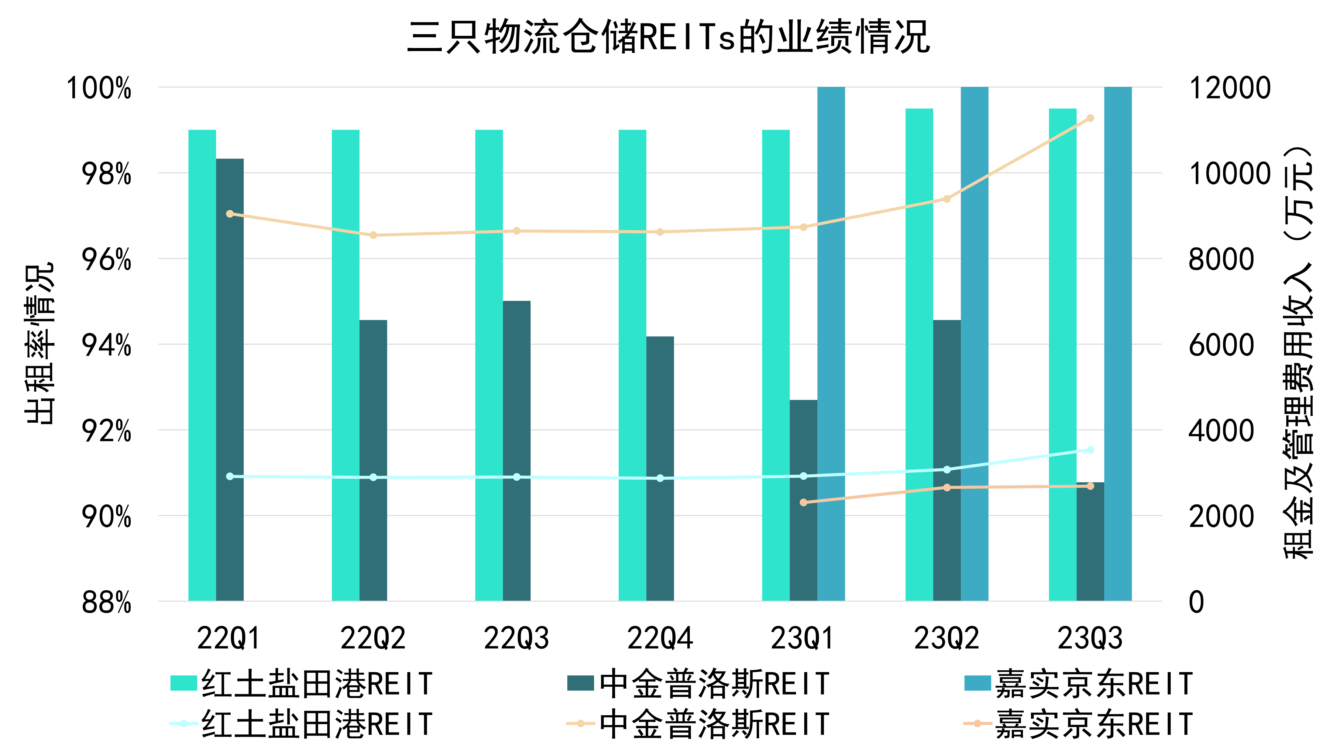 年內(nèi),三支倉儲REITs業(yè)績表現(xiàn)穩(wěn)中向好,租金及管理費用收入逐漸上升。