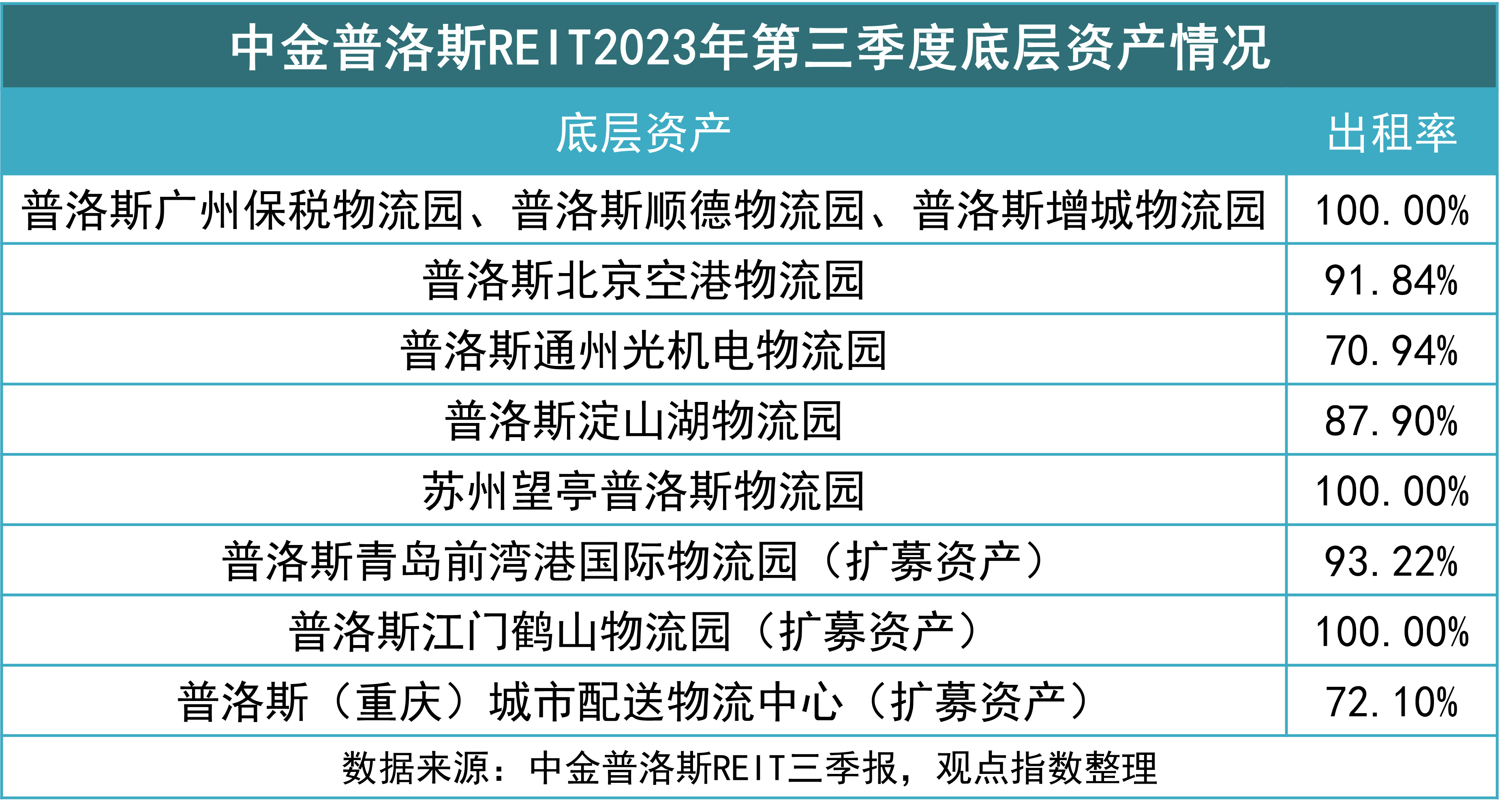 數(shù)據(jù)來源:物流倉儲REITs季報,觀點指數(shù)整理