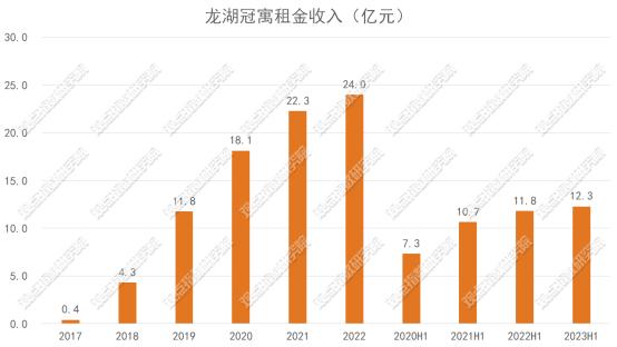 觀點網(wǎng) 在2022年的業(yè)績說明會上,龍湖集團表示冠寓業(yè)務(wù)已經(jīng)連續(xù)2年盈利,2023年也會有一個比較良性的盈利增長。以2023年的表現(xiàn)來看,上半年租金收入保持穩(wěn)定,為12.3億元。