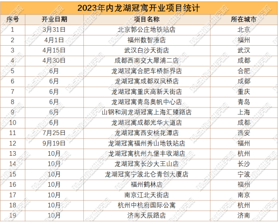 2023年內(nèi)新開業(yè)的龍湖冠寓武漢白沙天街店(龍湖白沙天街上蓋)、龍湖冠寓重慶高新天街店(下樓即高新天街)以及龍湖冠寓南京江北天街店(南京江北天街)等門店,均在天街項目內(nèi)。