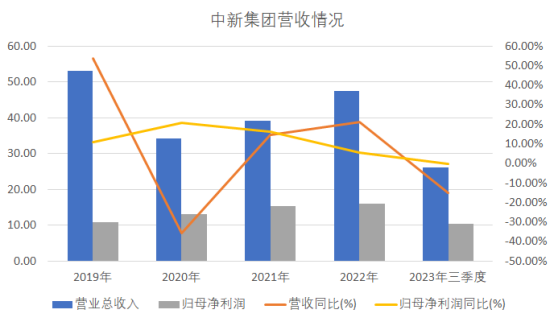 近年來,中新集團凈利潤一直保持增長,但是增速持續(xù)下滑。2023年營收也開始增速放緩,顯然受到經(jīng)濟大環(huán)境的影響,未來增長預期不確定。