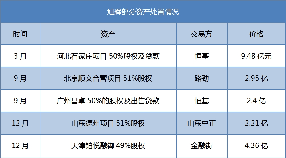 具體而言,3月份,旭輝通過與恒基兆業(yè)股權(quán)交易,互換了石家莊、廣州兩項目公司股權(quán);9月,旭輝先是2.95億退出與路勁合作的北京順義項目;再以2.4億元退出與恒基兆業(yè)合作的廣州增城項目;12月,以4.36億退出與金融街合作的天津鉑悅?cè)谟椖俊?/p>