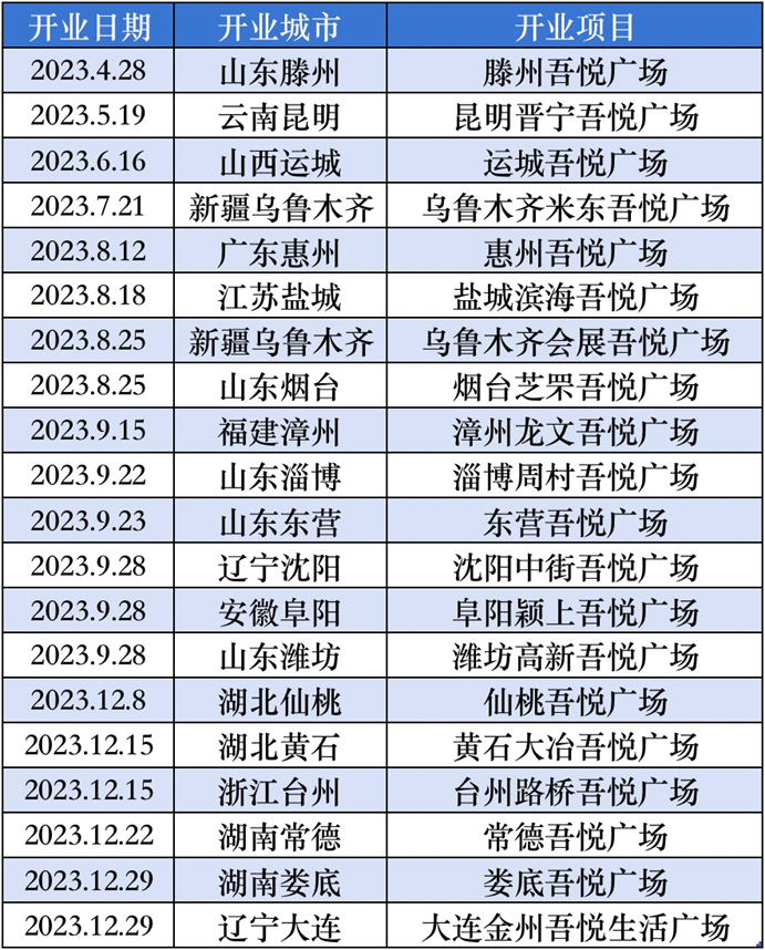 新城控股2023年新開業(yè)商業(yè)項(xiàng)目統(tǒng)計(jì)