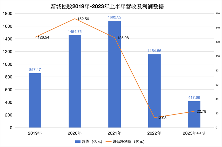 2022年及2023年上半年,新城歸母凈利潤與同期相比均有下滑趨勢(shì),分別為13.93億元以及22.78億元,銷售毛利率也分別下降至20.03%和19.04%。