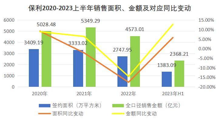 2023上半年,保利發(fā)展房地產(chǎn)銷售收入約1255.28億元,占總營收比例91.61%,較2022同期的1001.54億增長約25.33%。期內(nèi)銷售簽約面積達(dá)1383.09萬平方米,同比上升5.8%,實(shí)現(xiàn)銷售簽約金額2368.21億元,同比上升12.7%,市場占有率提升0.4個(gè)百分點(diǎn)至3.8%。
