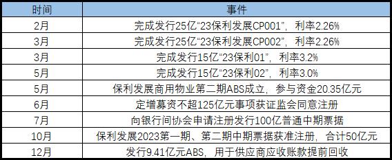 除125億定增計(jì)劃獲批之外,保利發(fā)展在融資端不斷拓寬低成本渠道。據(jù)不完全統(tǒng)計(jì),2023年該公司完成發(fā)行50億短期融資券、30億公司債、9.41億首期資產(chǎn)支持證券。