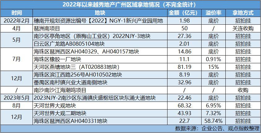 按此粗略觀察,越秀地產2023全年拿地平均溢價率也在10%左右。
