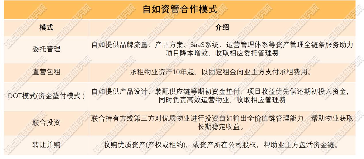 據(jù)觀點指數(shù)了解,目前自如資管包括委托管理、直營保租、DOT模式、聯(lián)合投資以及轉讓并購五種合作模式。