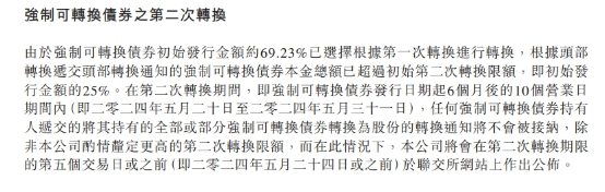 2023年12月6日,融創(chuàng)公布強制可轉(zhuǎn)換債券第一次轉(zhuǎn)換結(jié)果公告,已收到本金總額約19.04億美元的轉(zhuǎn)換通知,占初始發(fā)行額約69.23%。