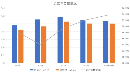 截至中期末,融創(chuàng)中國未經(jīng)審核資產(chǎn)總額約10700億元,負債總額約1萬億元,資產(chǎn)負債率達93.7%。