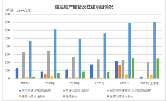 2023年上半年,信達(dá)地產(chǎn)儲(chǔ)備項(xiàng)目計(jì)容建筑面積為205.12萬平方米,其中儲(chǔ)備代建項(xiàng)目面積達(dá)到49.25萬平方米,比例進(jìn)一步上升至24.01%。同期,該公司在建代建項(xiàng)目面積達(dá)到251.43萬平方米。