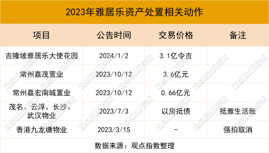 2023年雅居樂大部分資產(chǎn)處置預(yù)計(jì)錄得賬面虧損,但能換取一定的現(xiàn)金回籠已屬不易。目前,兩個(gè)境外項(xiàng)目轉(zhuǎn)手尚未完成。