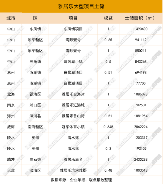 除已售項(xiàng)目外,雅居樂土地儲(chǔ)備中亦包含大量較早前拿地而未開發(fā)項(xiàng)目,如中山東鳳鎮(zhèn)新沙島地塊,計(jì)容建筑面積149萬平方米,2017年從玉峰地產(chǎn)手中接過,交易價(jià)格為37億元。