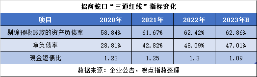 截至2023年中期,招商蛇口剔除預收賬款的資產負債率為62.86%,凈負債率47.01%,2022年全年水平接近。