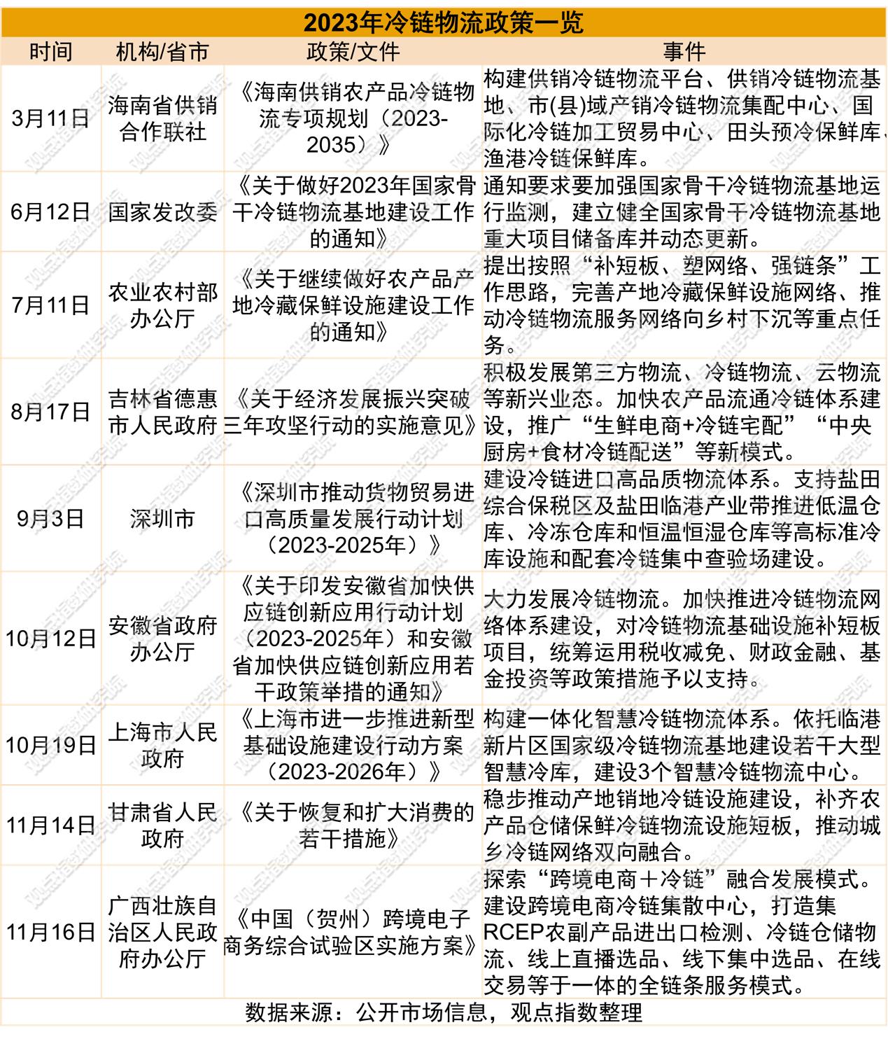 縱觀2023全年,政策頒布的主體大多為地方各省市,全年共錄得9項(xiàng)冷鏈物流政策。