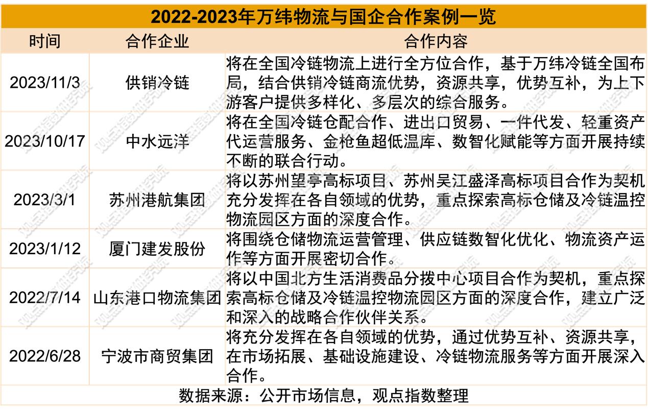 如2023年1月13日,萬(wàn)緯與建發(fā)股份簽署戰(zhàn)略合作協(xié)議,雙方將圍繞倉(cāng)儲(chǔ)物流運(yùn)營(yíng)管理、供應(yīng)鏈數(shù)智化優(yōu)化、物流資產(chǎn)運(yùn)作等方面開(kāi)展密切合作。