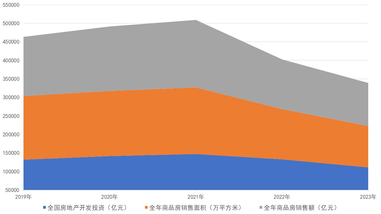 2023年,全國(guó)房地產(chǎn)開(kāi)發(fā)投資110913億元,比上年下降9.6%,其中,住宅投資83820億元,下降9.3%。全年商品房銷(xiāo)售面積111735萬(wàn)平方米,比上年下降8.5%,其中住宅銷(xiāo)售面積下降8.2%。商品房銷(xiāo)售額116622億元,下降6.5%,其中住宅銷(xiāo)售額下降6.0%。