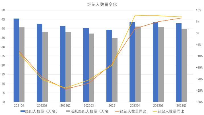 圖丨經(jīng)紀(jì)人、門(mén)店規(guī)模變化 數(shù)據(jù)來(lái)源:企業(yè)公告、觀點(diǎn)指數(shù)整理