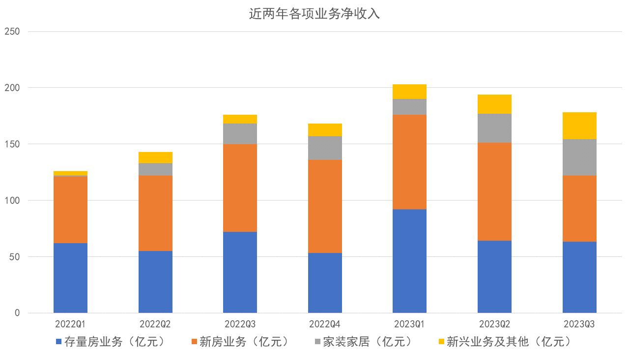 第三季度,家裝家居凈收入為32億元,較上年同期的18億元增長(zhǎng)72.1%;新興業(yè)務(wù)及其他凈收入為24億元,較上年同期的8億元上升202.7%。