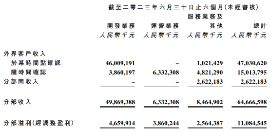 龍湖集團(tuán)2023年中期個(gè)分部業(yè)務(wù)收入