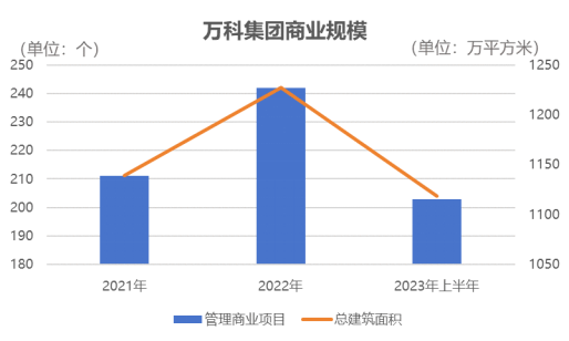 數(shù)據(jù)顯示,截至2023年6月底,萬科集團(tuán)(含印力)累計(jì)開業(yè)203個商業(yè)項(xiàng)目(不含輕資產(chǎn)輸出管理項(xiàng)目),建筑面積1118.3萬平方米;規(guī)劃和在建建筑面積為381.2萬平方米。