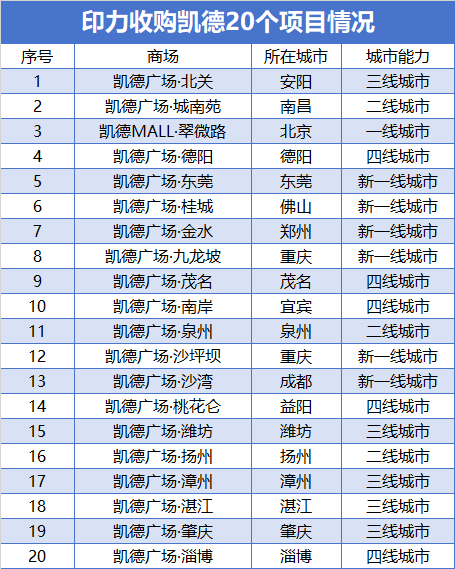 實(shí)際上,萬科收購后曾考慮推動印力集團(tuán)單獨(dú)上市,彼時印力斥資84億元收購了凱德20個項(xiàng)目,這些項(xiàng)目大多位于三四線城市。