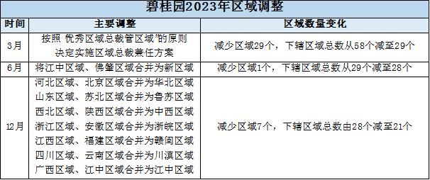 3月,碧桂園按照“優(yōu)秀區(qū)域總裁管區(qū)域”的原則,決定實(shí)施區(qū)域總裁兼任方案,將原有的58個(gè)區(qū)域縮減至29個(gè),保留下來(lái)的區(qū)域總將掌管更大的管轄區(qū)域,另外的29個(gè)區(qū)域總降為區(qū)域執(zhí)行總裁。
