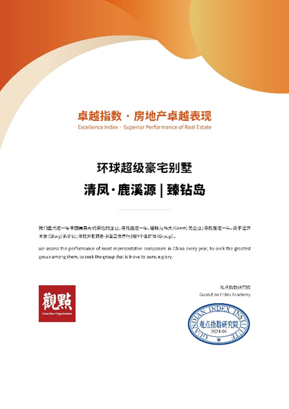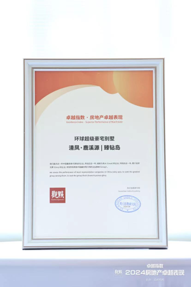 發(fā)布儀式現(xiàn)場(chǎng),在全行業(yè)見證下,清鳳·鹿溪源|臻鉆島憑借優(yōu)異表現(xiàn),入選“環(huán)球超級(jí)豪宅別墅”。