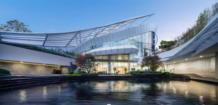 入選理由:清鳳·鹿溪源|臻鉆島是清鳳集團(tuán)TOP系產(chǎn)品,項(xiàng)目整體占地約320畝,容積率僅約1.8。其外立面造型設(shè)計(jì)以超級(jí)游艇為靈感,流線型設(shè)計(jì),同時(shí)采用高規(guī)格鋁板和中空 low-e玻璃幕墻,窗地比可達(dá)40%,是成都少見的城級(jí)大盤,而且作為純住宅項(xiàng)目,較低的容積率保證了居住產(chǎn)品的純粹性。