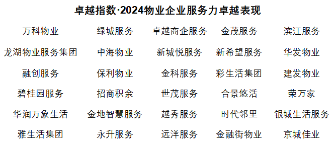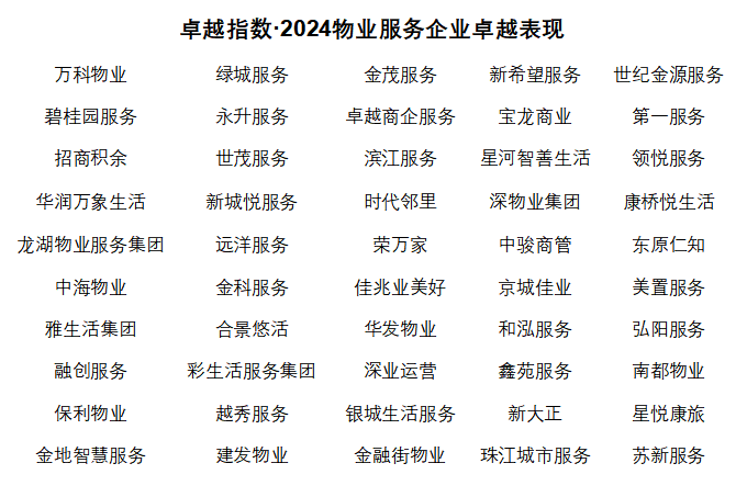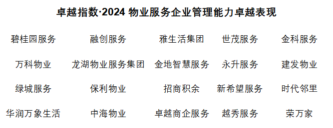 觀點指數(shù)研究院盤點這一年里物業(yè)服務企業(yè)的綜合表現(xiàn),從綜合實力、服務水平到財務及資本市場表現(xiàn)、創(chuàng)新科技服務等不同維度,尋覓這些具有卓越代表性、引領(lǐng)行業(yè)發(fā)展潮流的物業(yè)企業(yè),并于今日(4月11日)2024觀點物業(yè)大會上,發(fā)布“卓越指數(shù)·2024物業(yè)服務卓越表現(xiàn)”研究成果。