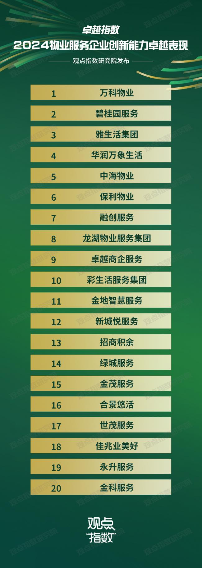 觀點(diǎn)指數(shù) 創(chuàng)新與變革理應(yīng)成為物業(yè)管理行業(yè)的未來(lái)追求。過(guò)去一年里,哪些物業(yè)企業(yè)能脫穎而出,引領(lǐng)行業(yè)之先?