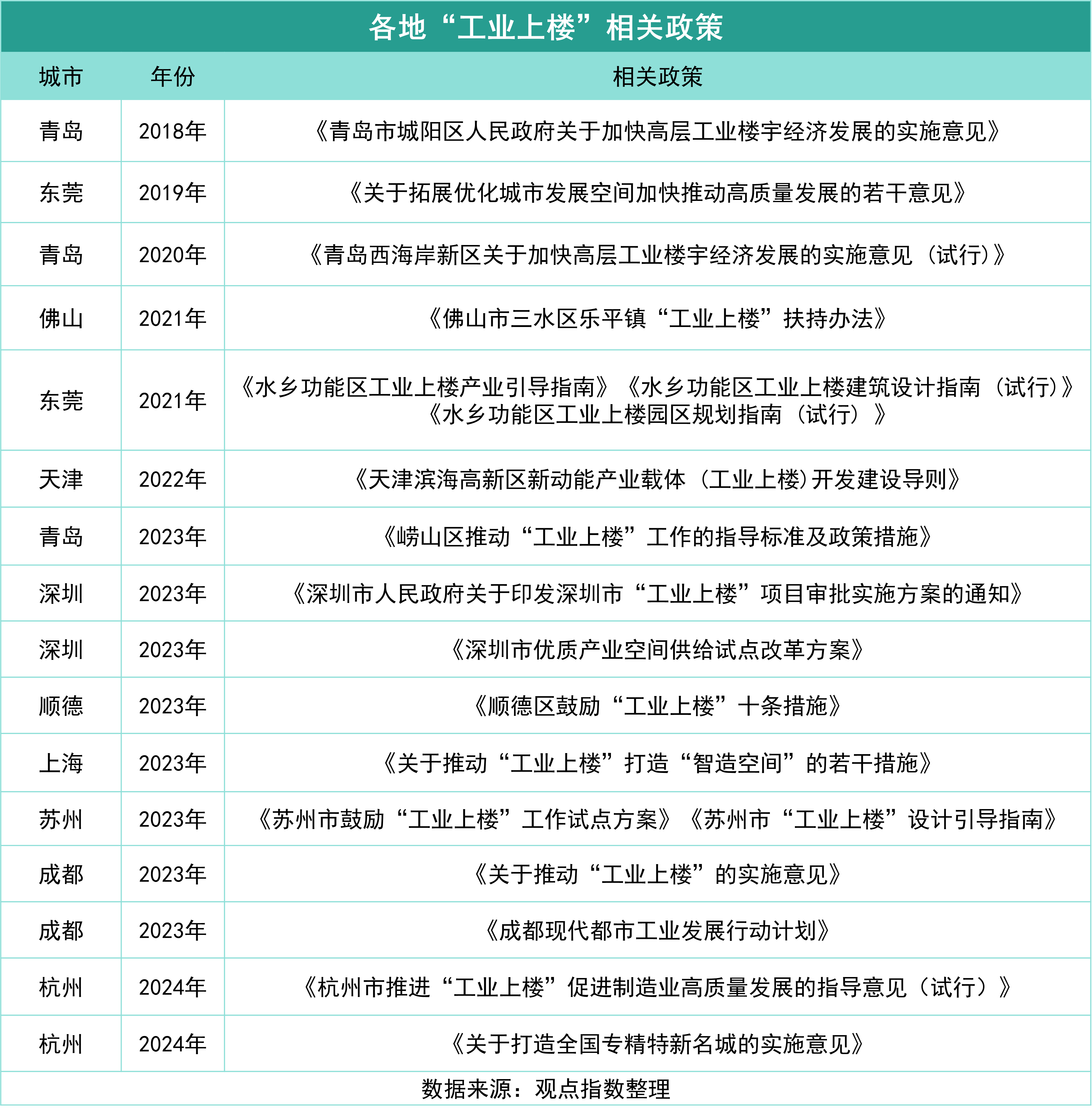 總的來說,從國家到地方,一系列“工改工”和“工業(yè)上樓”政策的出臺,為城市土地資源的再開發(fā)和產業(yè)升級提供了新的方向和動力。