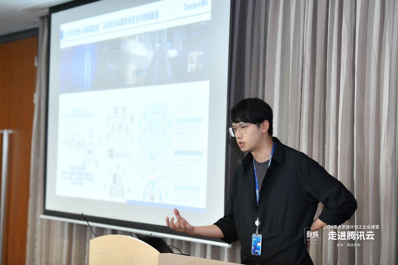 分享會開始前,學(xué)員們在騰訊云引導(dǎo)下,參觀了騰訊企業(yè)展廳以及數(shù)字孿生實驗室,共同見證了騰訊在存儲硬件設(shè)施建設(shè)管理、微信生活服務(wù)、大數(shù)據(jù)應(yīng)用和互聯(lián)網(wǎng)生態(tài)圈等領(lǐng)域的技術(shù)積累。