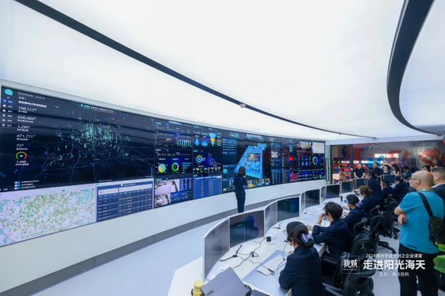 在講解人員的陪同下,企業(yè)課堂的學(xué)員們一同參觀(guān)了位于陽(yáng)光海天總部一樓的陽(yáng)光海天數(shù)智化管理中心。依托人工智能和大數(shù)據(jù)技術(shù),陽(yáng)光海天將智慧化、移動(dòng)化與停車(chē)管理系統(tǒng)緊密結(jié)合,重新定義智慧停車(chē)。