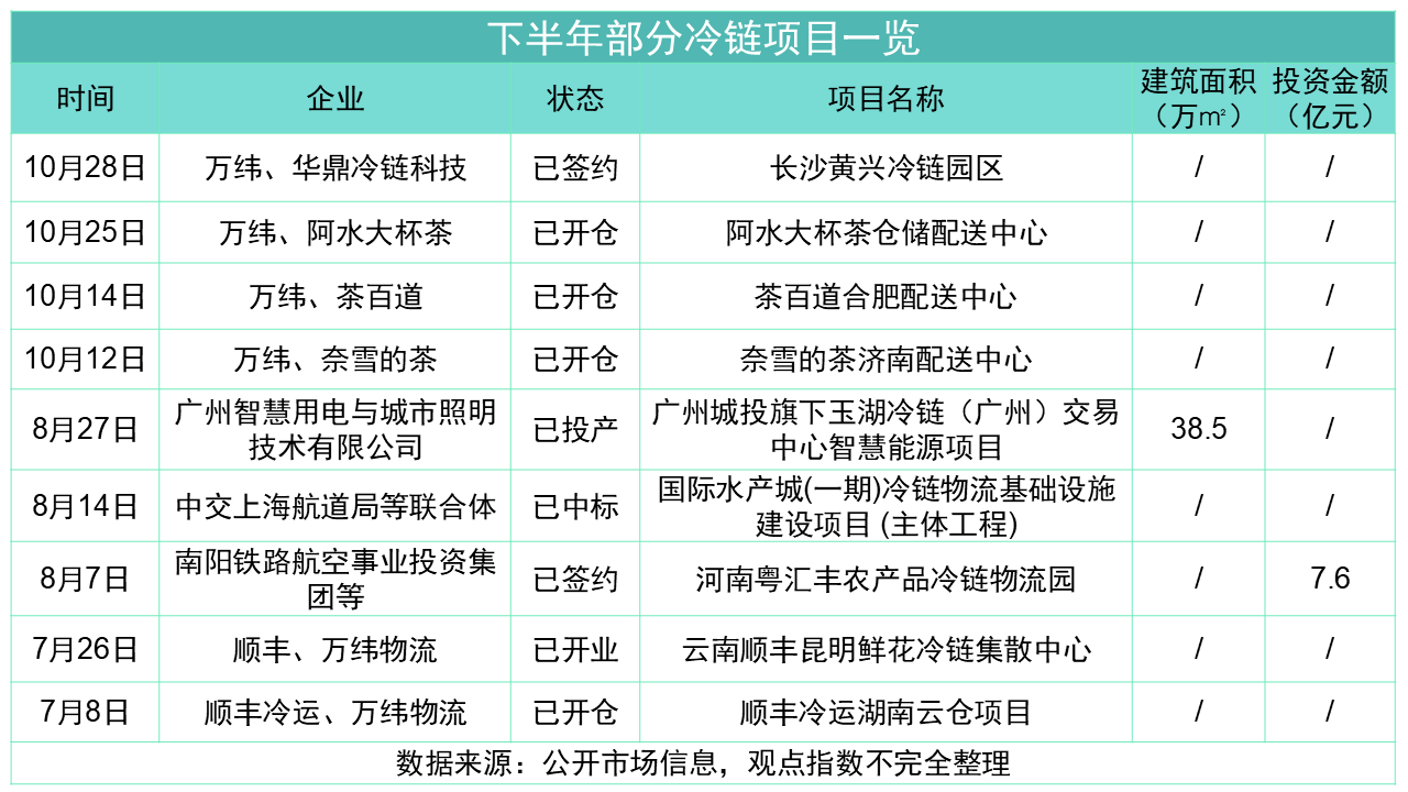 此外值得注意的是,年內(nèi)各類新開工、開倉的冷庫項目數(shù)量持續(xù)增加,投資熱度不減。