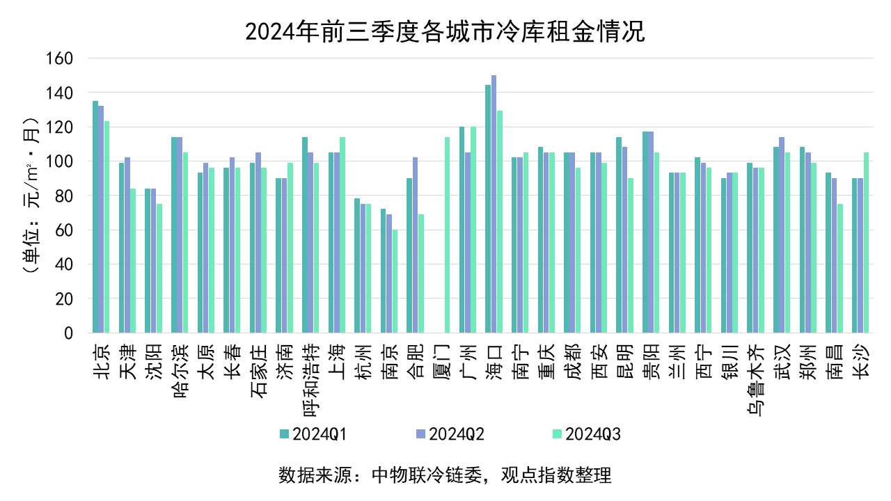 縱觀全國30個城市的冷庫平均租金,可以發(fā)現(xiàn)2024年以來冷庫需求疲軟,去化難度加大,且不同城市的冷庫租金都面臨著下降的趨勢。