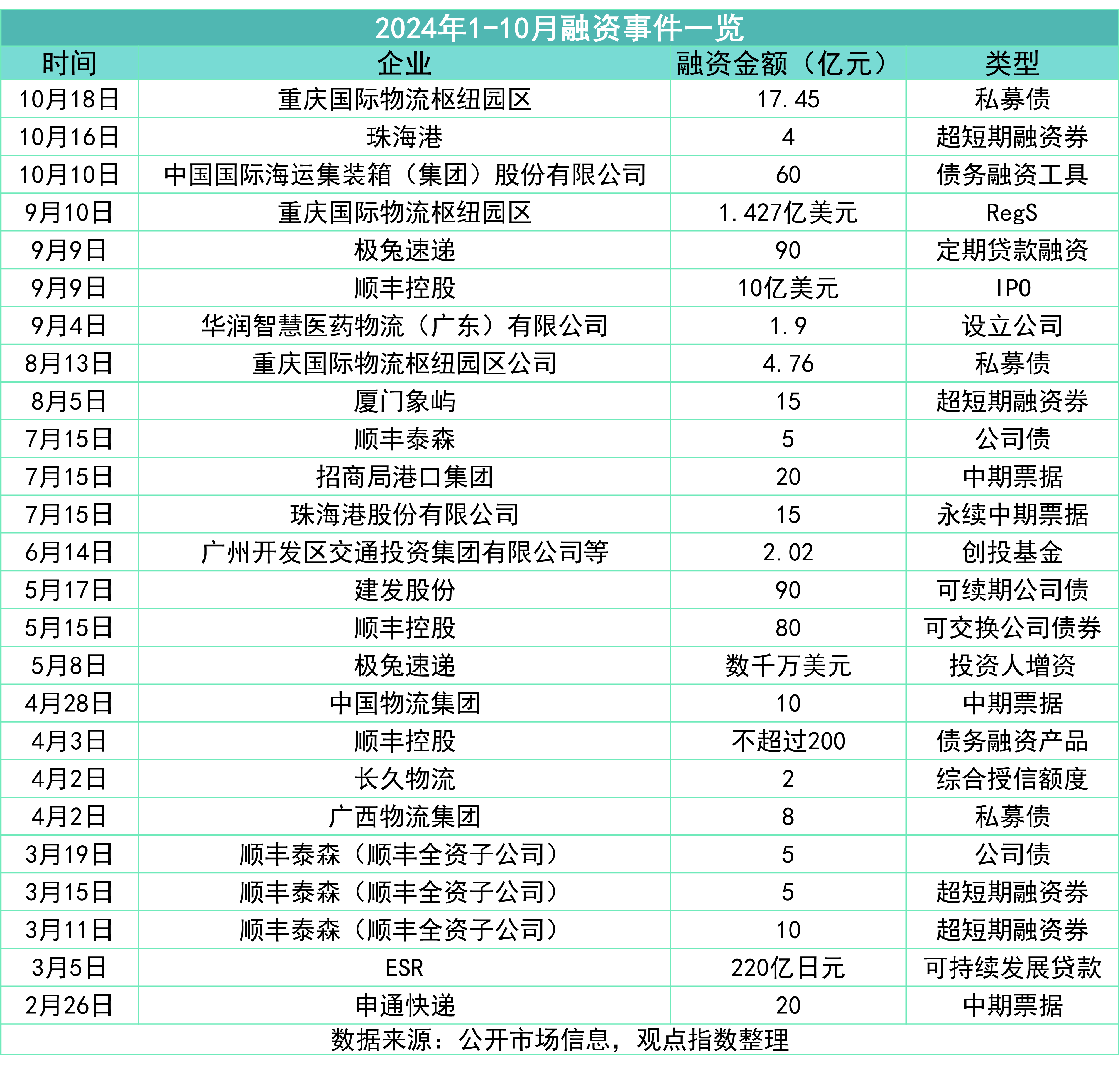 其中可以發(fā)現(xiàn),快遞類企業(yè)是融資的主力軍,如順豐控股、極兔速遞等。