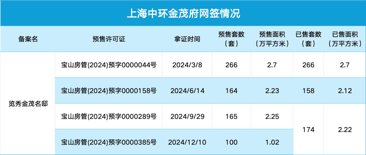 從上海房管局發(fā)布的數(shù)據(jù)來看,中環(huán)金茂府共獲取四張預售許可證,共計推出695套住宅,預售面積8.2萬平方米。