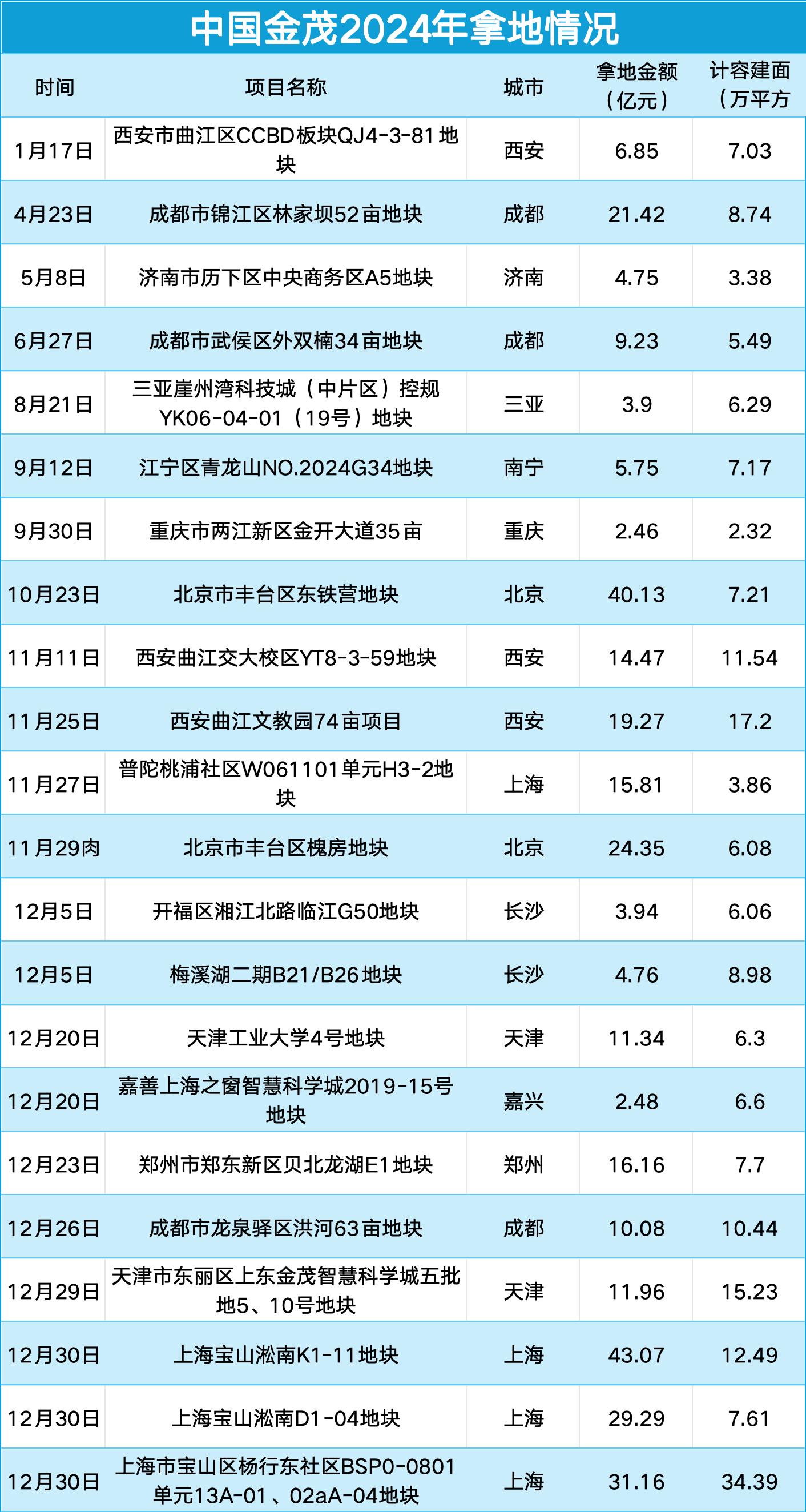 進入12月份,中國金茂在土地市場更是按下了加速鍵,接連在長沙、天津、嘉興、鄭州、成都、上海等地逆勢搶地。
