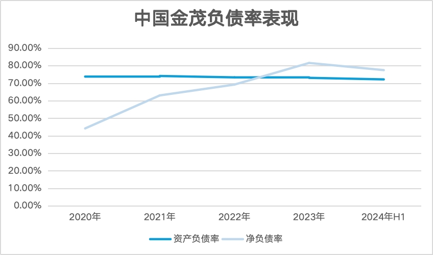除此之外,中國金茂負債率亦實現(xiàn)下調(diào),2024年中期資產(chǎn)負債率為72.14%,凈負債率為77.43%,分別較2023年末下降0.88個百分點、4.09個百分點。