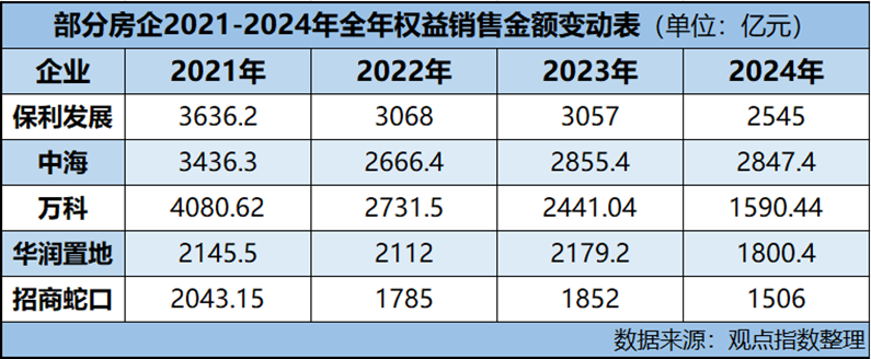 與2023年對比,保利發(fā)展權(quán)益銷售金額從3057億元回調(diào)至2545億元,中海則從2855.4億元微降至2847.4億元。