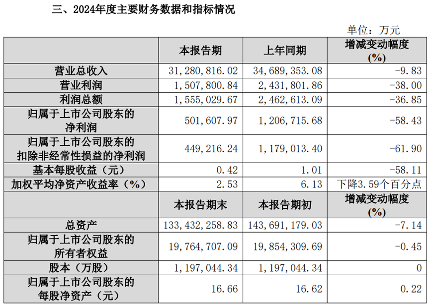 扣除非經(jīng)常性損益后,歸母凈利潤約為44.92億元,較上年同期減少72.98億元,同比回落61.9%。
