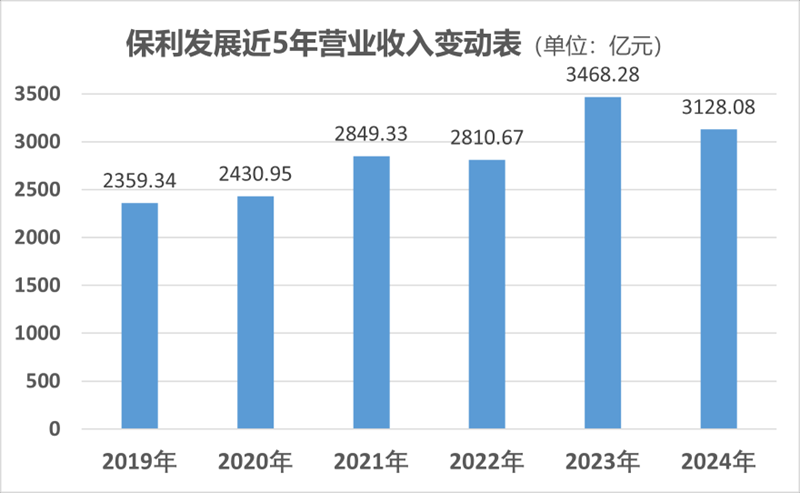 不過值得指出,保利發(fā)展2019年至2023年營業(yè)收入整體保持上升趨勢,2024年降幅亦不算大,依舊穩(wěn)在3000億元水平。