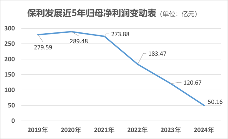 2025年1月17日,保利發(fā)布業(yè)績快報,預(yù)計公司2024年度實現(xiàn)歸母凈利潤50.16億元,與上年同期相比減少70.51億元,該項數(shù)據(jù)在2023年錄得120.67億元。