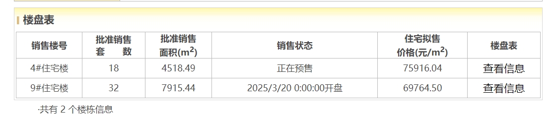 就在3月4日,該項目取得了第二張預(yù)售許可證,準(zhǔn)許銷售面積12433.93平方米,分布在4#住宅樓及9#住宅樓,共計批準(zhǔn)銷售50套住宅。9#住宅樓的32套住宅將于本月20日正式開盤,擬售均價在69764.5元/平方米。