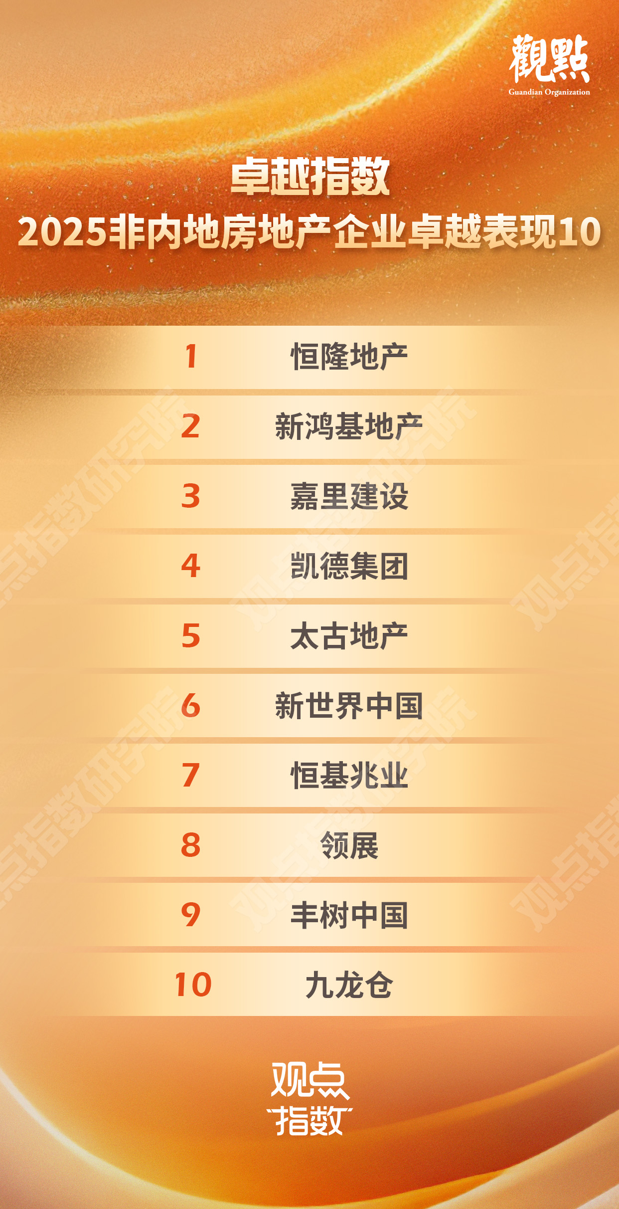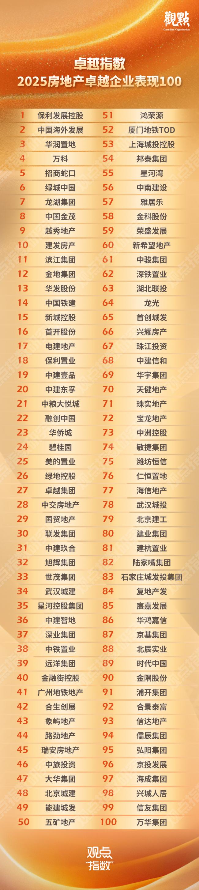 觀點指數(shù) 3月20日,2025觀點年度論壇在廣州舉辦,現(xiàn)場重磅發(fā)布“卓越指數(shù) · 2025房地產(chǎn)卓越表現(xiàn)”研究成果。