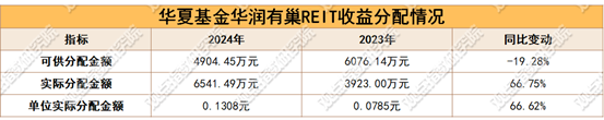 項目運營層面,華夏基金華潤有巢REIT投資的兩個項目在2024年整體運營表現(xiàn)穩(wěn)健,但同時需關注租金下行壓力及商業(yè)板塊的優(yōu)化調(diào)整以進一步提升整體收益。